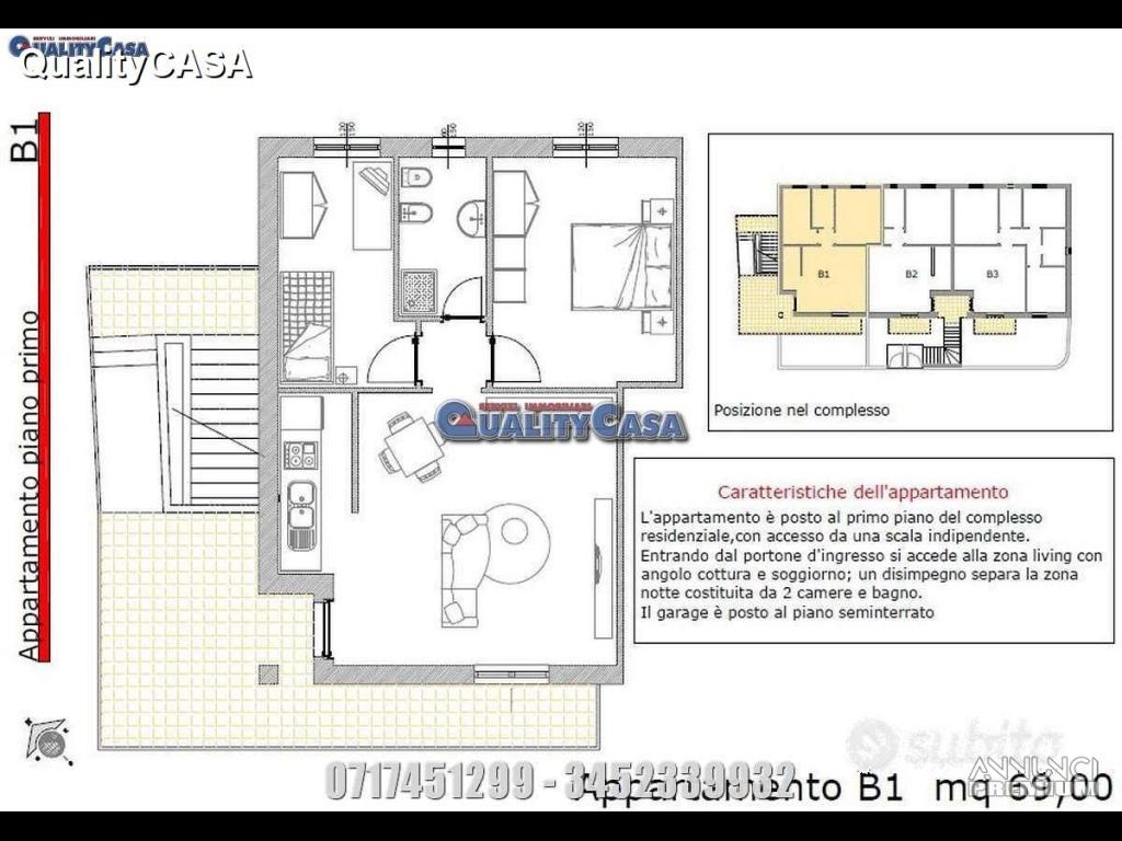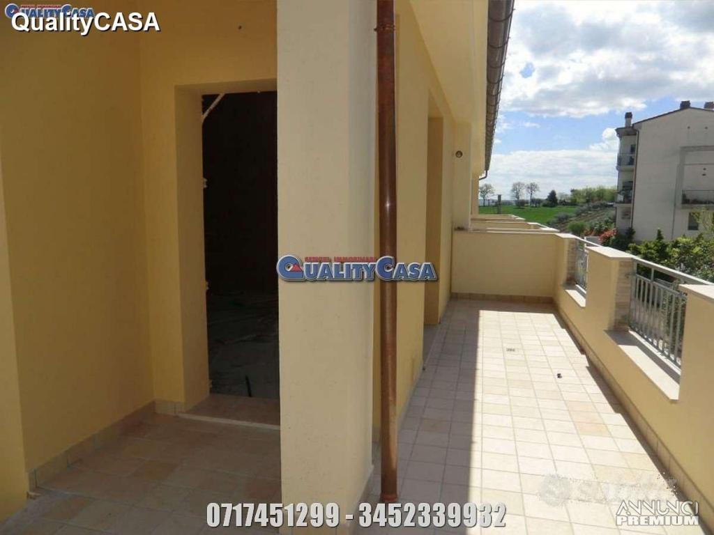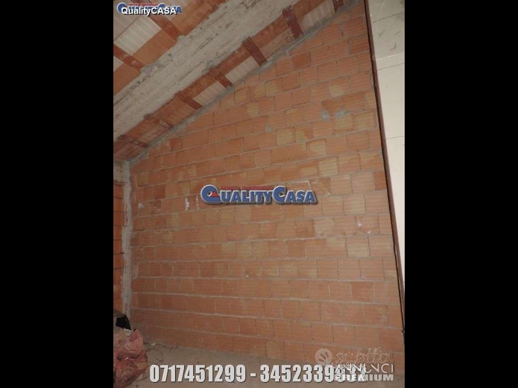 Agenzia immobiliare QualityCASA propone appartamento di 69 m AL GREZZO a Monte San Vito: primo ed ultimo piano con Ingresso indipendente sul soggiorno con angolo cottura, camera matrimoniale, cameretta, bagno, balcone, terrazzo ed ampio garage.