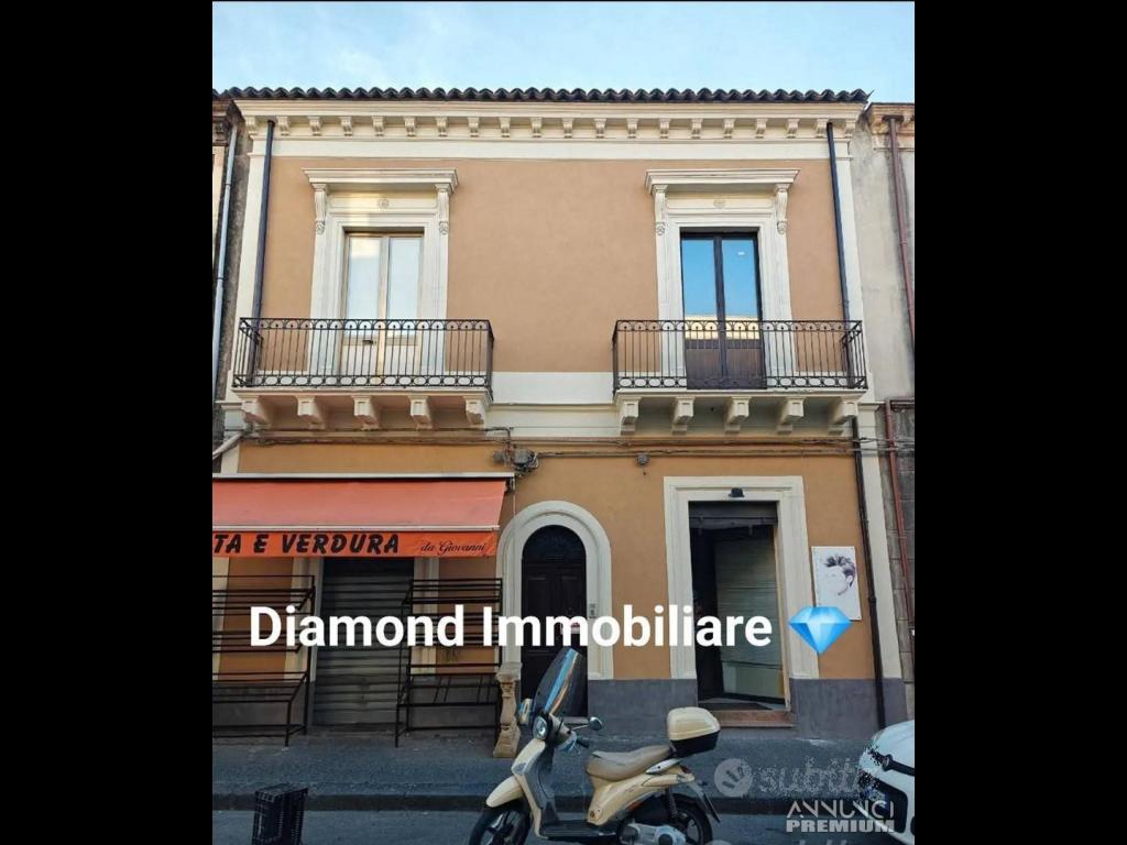 La Diamond Immobiliare propone in vendita a Fiumefreddo di Sicilia zona centrale e servita un intero immobile singolo, distribuito in 2 appartamenti unificabili di due vani ciascuno molto ampi più servizi Ampio terrazzo a livello,garage,posto auto e un piccolo giardino privato con possibilità di acquistare anche la bottega sottostante con trattativa separata