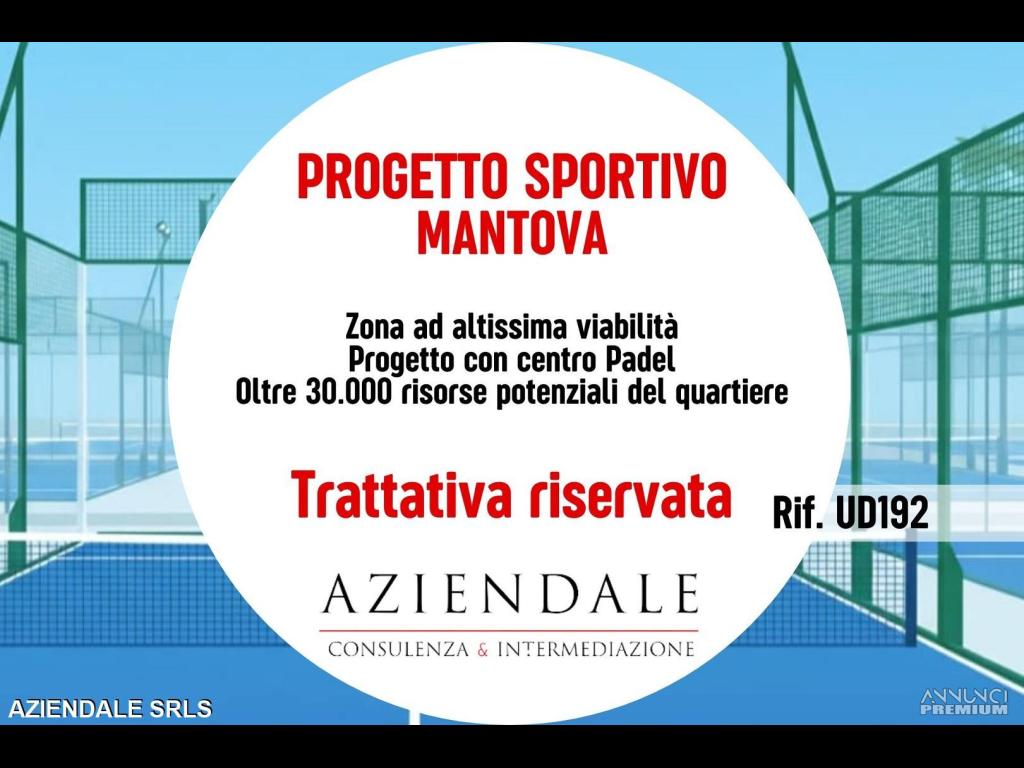 RIF.UD192 - Cerchi un'area commerciale per realizzare il tuo progetto sportivo? A Mantova, abbiamo un'area commerciale di 2600 mq con un indotto di oltre 30.000 potenziali clienti. Progetto attualmente sviluppato per la realizzazione di un centro sportivo all'avanguardia, con campi da padel, reception, bar, infermeria, spogliatoi e un impianto fotovoltaico. Un Investimento in una zona in continua crescita, con un'alta domanda di servizi sportivi e ricreativi. Trattativa riservata. INFO: Tel. 045 2591245 - CELL. 3343859581. Si prega non inviare e-mail senza recapiti telefonici e/o richiedere informazioni generiche previa contatto telefonico diretto al numero sopracitato in quanto non si rilascia alcuna informazione a sconosciuti riguardante l'attività in annuncio. L'indirizzo indicato non corrisponde all'ubicazione dell'attività, ma è puramente indicativo.