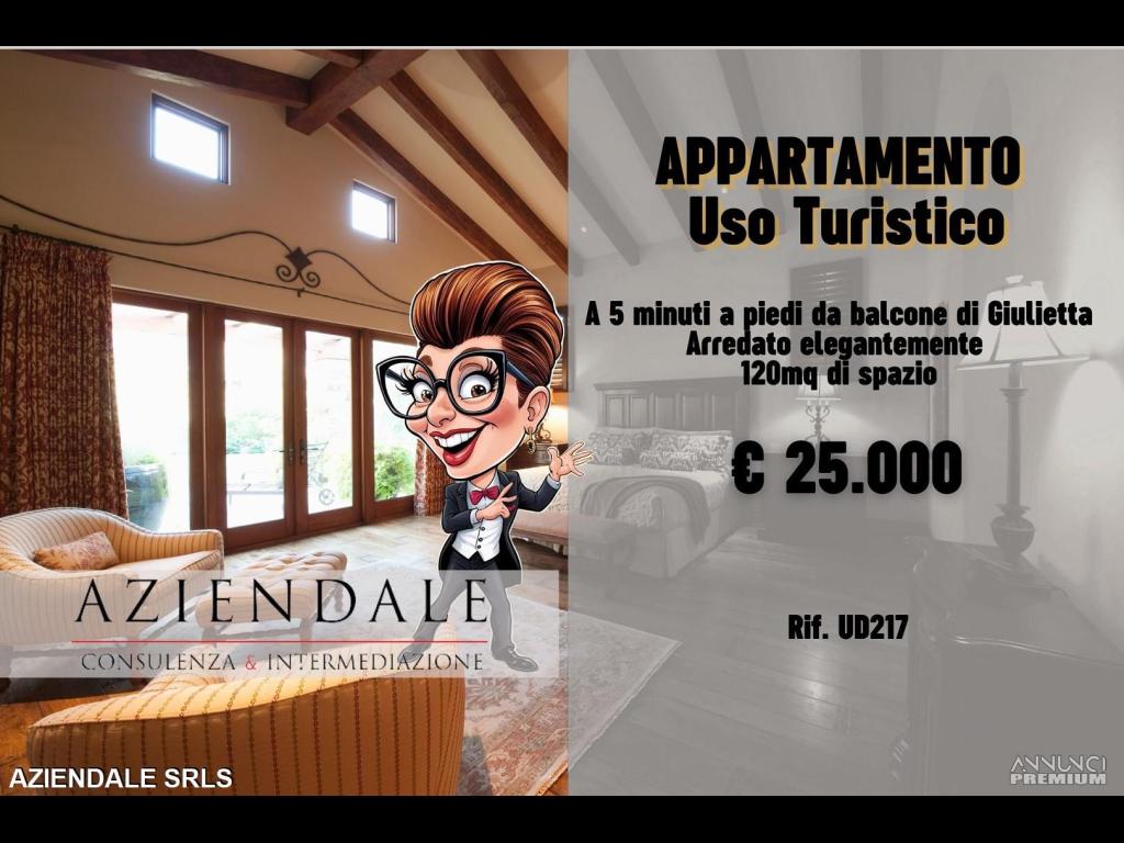 RIF.UD217 - AZIENDALE propone un'occasione rara – Rientro dell’investimento già nel primo anno. A soli 5 minuti a piedi dal cuore pulsante della città e da uno dei balconi panoramici più amati dai turisti di tutto il mondo, proponiamo una locazione turistica singola ma estremamente redditizia, attiva in un appartamento completamente ristrutturato, arredato con gusto e pronto all’uso. Composto da 2 camere da letto, cucina, soggiorno, un bagno importante e zona lavanderia, l’immobile accoglie gli ospiti con spazi curati, luminosità naturale e tutti i comfort moderni. La posizione strategica e la qualità dell’accoglienza garantiscono un’occupazione elevata durante tutto l’anno. Fatturato dimostrabile. Ottima la redditività e le recensioni. Ideale per investitori attenti e veloci. AZIENDALE: Tel. 045 2591245 Cell. 334 3859581. La posizione inserita non corrisponde ubicazione dell'attività, ma alla sede dell'agenzia. Si prega non inviare e-mail senza recapiti telefonici e/o richiedere informazioni generiche previa contatto telefonico diretto al numero sopracitato in quanto non si rilascia alcuna informazione a sconosciuti riguardante l'attività in annuncio.