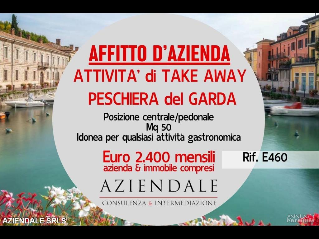RIF. E460- AZIENDALE propone l'affitto di azienda di attività in esercizio di vicinato, forma Take away, che per ubicazione in pieno centro storico ad alto passaggio turistico, risulta essere idonea a qualsiasi tipologia alimentare d'asporto (piadineria, hamburgheria, gelateria, pizza al taglio ecc). Posizione centrale viene concessa in affitto d'azienda già corredata di bancone espositivo e pronta all'uso. Disponibile da ottobre 2025. Canone affitto € 2.400 con deposito cauzionale di 6 mensilità. Info: Tel. 045 2591245 - Cell. 334 3859581. L'indirizzo inserito non corrisponde all'ubicazione dell'attività, ma è puramente dimostrativo. Si prega non inviare e-mail senza recapiti telefonici e/o richiedere informazioni generiche previa contatto telefonico diretto al numero sopracitato in quanto non si rilascia alcuna informazione a sconosciuti riguardante l'attività in annuncio.