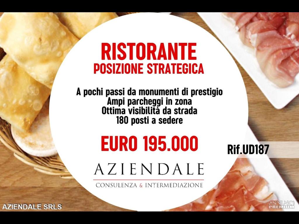 RIF. UD187 - AZIENDALE vende ristorante di 400 mq con grande visibilità grazie alle ampie vetrine, situata in un quartiere prestigioso di Verona a pochi passi dai principali monumenti ad alta frequentazione turistica. Con quasi vent'anni di presenza sul mercato e importanti fatturati dimostrabili, l'attività dispone di una cucina di circa 25 mq con cappa autoaspirante ai carboni attivi. Gli interni sono splendidamente arredati e gli impianti sono stati rinnovati 4 anni fa. Un'opportunità unica per investire in una posizione strategica. Prezzo richiesto Euro 195.000. INFO: 0452591245 – 3343859581 - L'indirizzo inserito non corrisponde all'ubicazione dell'attività, ma alla sede dell'agenzia. Si prega non inviare e-mail senza recapiti telefonici e/o richiedere informazioni generiche previa contatto telefonico diretto al numero sopracitato in quanto non si rilascia alcuna informazione a sconosciuti riguardante l'attività in annuncio. Siamo in Verona Stradone Porta Palio n. 74/B a tua disposizione aperti al pubblico in orario 9/13 e 15.30/19.