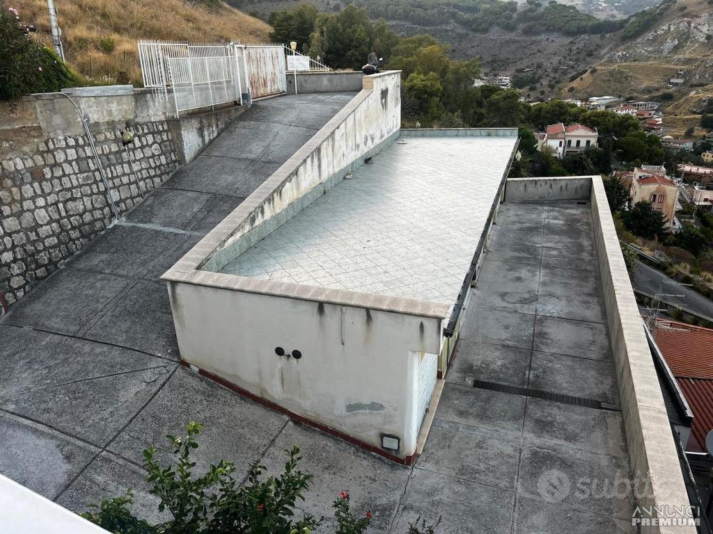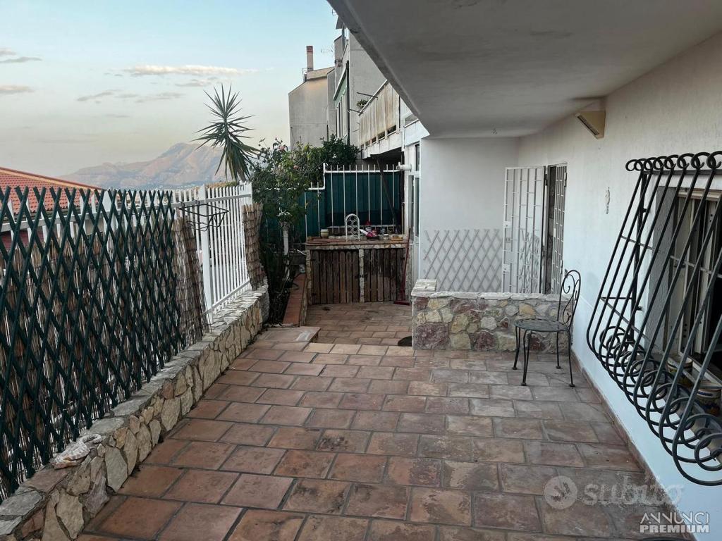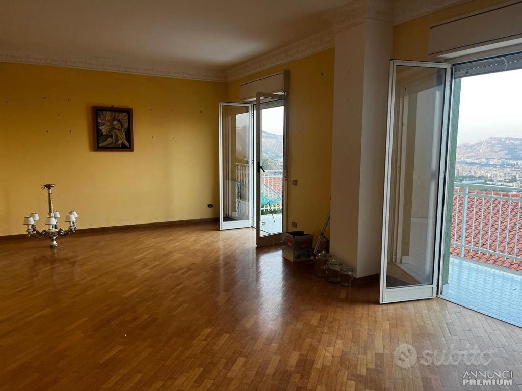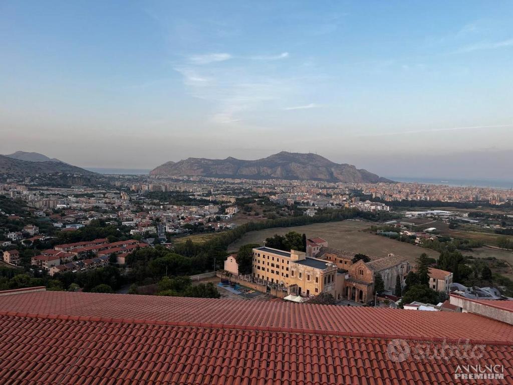 PIANTO TERRA: ingresso tramite scala interna o accesso esterno su ampio salone con balcone panoramico che affaccia su tutto il golfo di Palermo;