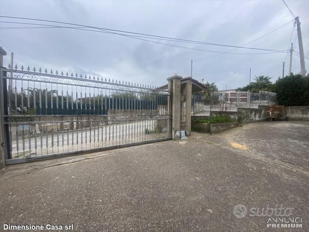 VENDITA - Rif. VL105.Villa unifamiliare di circa 180 mq, in discrete condizioni manutentive, composta da 7,5 vani, con corte di 350 mq e terreno di 1.500 mq. La proprietà si distingue per la sua posizione strategica, a ridosso del centro abitato. Il piano seminterrato comprende una comoda taverna, un bagno e un ampio magazzino adiacente. Il piano terra è così suddiviso: ingresso, cucina/salone in open space, due camere da letto, bagno, doppio servizio e ripostiglio. Tutti gli ambienti dispongono di affaccio sui balconi. L'immobile è dotato di riscaldamento autonomo con caldaia a sansa, infissi in alluminio e ambienti climatizzati. La riserva idrica è di 10.000 litri, con condotta idrica presente. La proprietà è interamente recintata e dotata di cancello automatizzato.