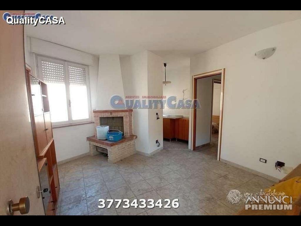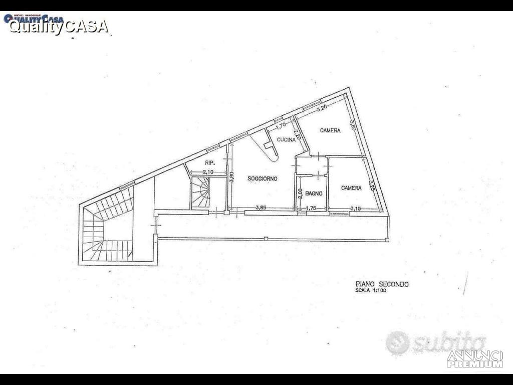 - Appartamento piano secondo: ingresso, soggiorno con camino, cucinino, camera, cameretta, bagno con doccia, ripostiglio, balcone e posto auto esterno;