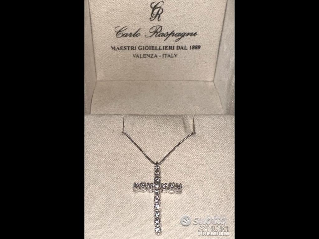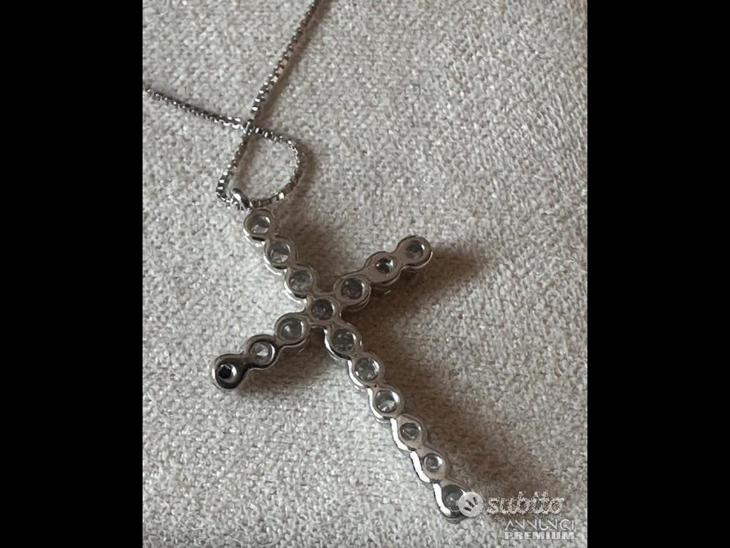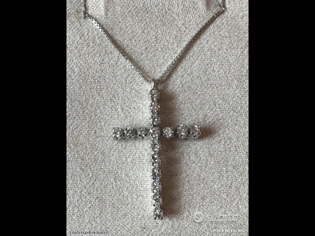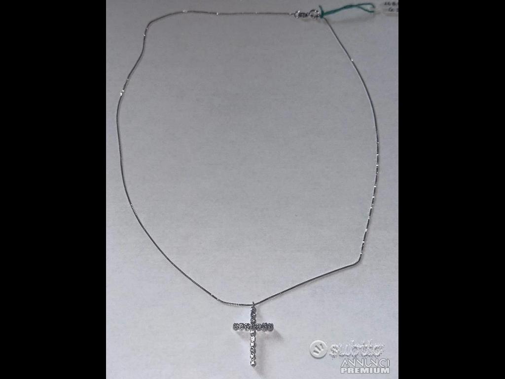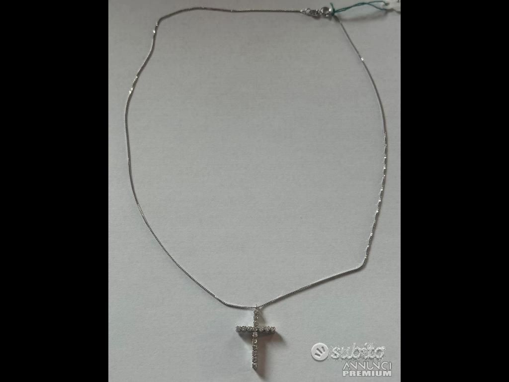 990 €COLLANA CROCE ORO BIANCO 18kt. E DIAMANTI NATURALI