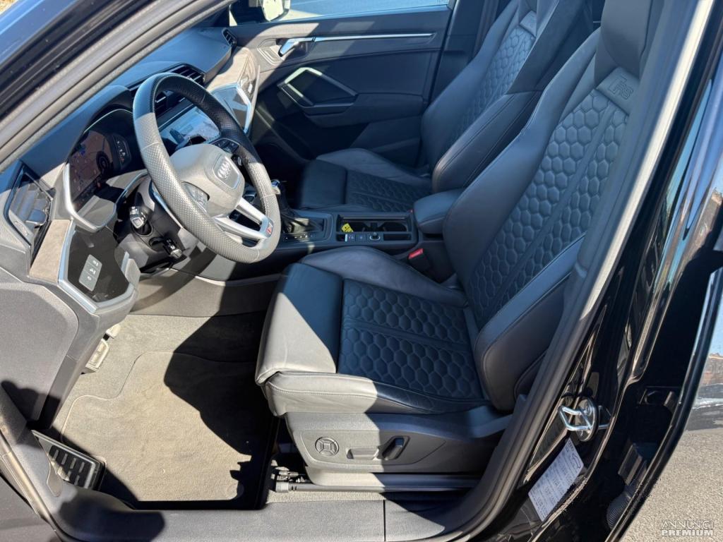 AUDI RS Q3 Sportback 2.5 400cv Quattro s-tronic, Vettura Imm. 27/05/2022 km: 46.955, INTERNO IN PELLE NERA RS, TETTO PANORAMICO APRIBILE ELETTRICAMENTE, SEDILI ANTERIORI RISCALDATI, SEDILI CON REGOLAZIONE ELETTRICA CON MEMORY PACK, SUPPORTO LOMBARE, PINZE FRENI ROSSA CARBOCERAMICA, SISTEMA DI NAVIGAZIONE SATELLITARE, VIRTUAL COCKPIT PLUS, AUTORADIO DIGITALE, APPLE CARPLAY, SENSORI PARCHEGGIO ANTPOST. + TELECAMERA 360° RETROMARCIA, LUCI AMBIENTE, FARI A LED MATRIX, RICONOSCIMENTO SEGNALETICA STRADALE, AVVISO DI VEICOLO IN SORPASSO ANGOLO CIECO, CLIMATIZZATORE AUTOMATICO 4 ZONE REGOLABILE SEPARATAMENTE, AUDI PRE SENSE, ADAPITIVE CRUISE CONTROL, VOLANTE SPORTIVO MULTIFUNZIONALE CON PADDLES APPIATTITO NELLA PARTE INFERIORE, VETRI OSCURATI, CERCHI IN LEGA DA 21" NERI LUCIDI, VETTURA PARI AL NUOVO!!! FATTURABILE IVA ESPOSTA!!!