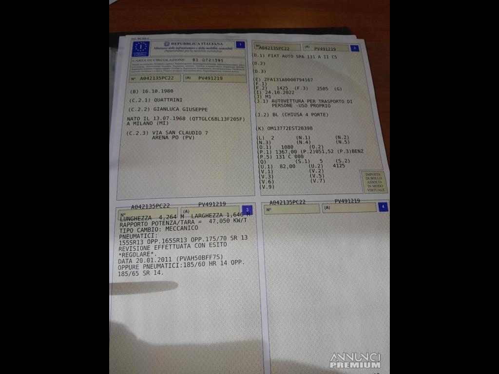 Vendo VETTURA IN OTTIME CONDIZIONI GENERALI; IL MOTORE FUNZIONA PERFETTAMENTE, AUTO AFFIDABILISSIMA PRONTA A VIAGGIARE, TUTTA ORIGINALE, REVISIONATA, OK NEOPATENTATI, QUALCHE SEGNO DI CARROZZEIRA, MOLTO SANA NON HA UN FILO DI RUGGINE, ISCRIVIBILE ASI E CRS, ACCETTO SCAMBI E PERMUTE ECC... per qualsiasi info chiamare o mandare sms e whatsapp 3.4.7..1.2.3.6.8.0.5, PREZZO TRATTABILE