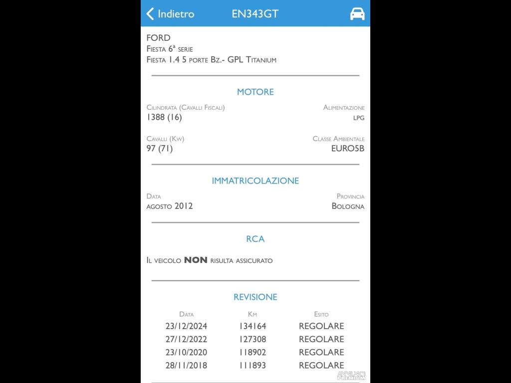 Ford Fiesta 1.4 Benzina/GPL 97CV con validità bombolone 12/2032