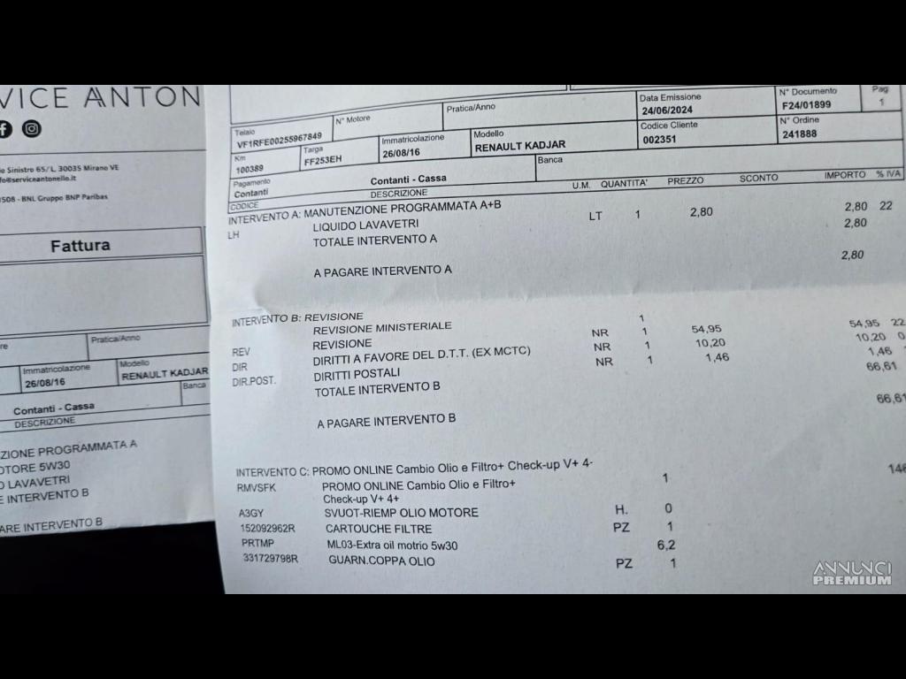 Vendo Bellissima Renault Kadjar Unico Proprietario non Fumatore Autovettura Perfetta in Tutto Nessun Intervento da Fare, Chilometraggio 107654 ,Tagliandi Certificati Renault. Qualsiasi Prova con il Vostro Meccanico di Fiducia o Direttamente alla Renault.Sistema Audio Bose, Navigatore Satellitare, Telefono Bluetooth Vivavoce, Comandi al Volante, Cruise Control,Controllo Trazione,Telecamera Posteriore per Retromarcia, Parcheggio Assistito, Sensori di Parcheggio Anteriori e Posteriori, Sedili Anteriori Elettrici, Sedili Riscaldati,Due set di Tappeti, Climatizzatore BiZone,Interni in Pelle,Vetri Privacy, Chiusura Centralizzata e Accensione Keyless chiave in Tasca