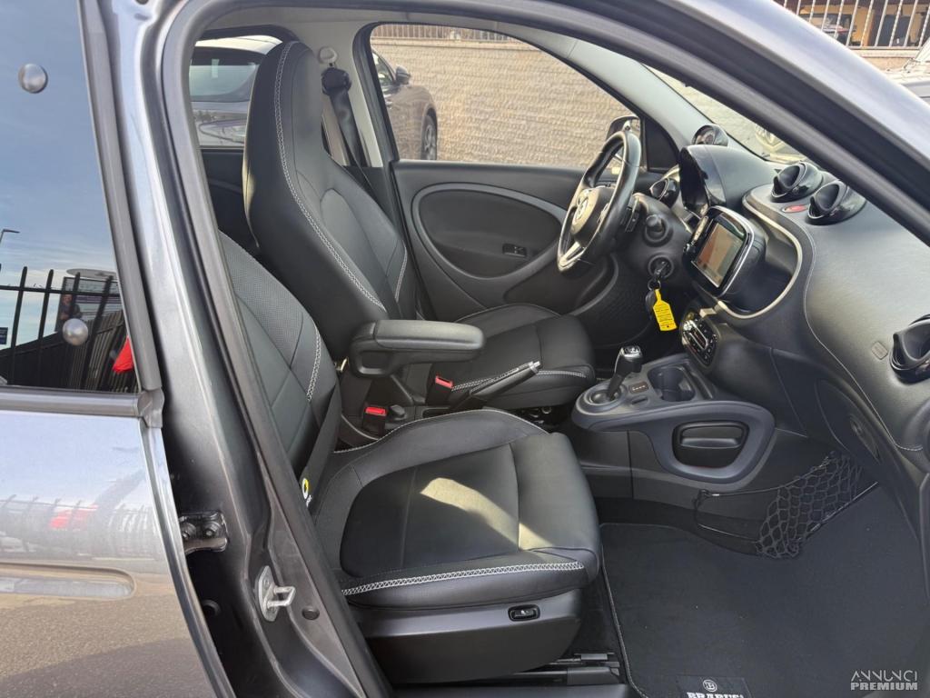 SMART FORFOUR 90cv TURBO BRABUS STYLE TWINAMIC Imm. 03/2019 Km: 68.166!!!! Grigio Scura Met. Cambio AUTOMATICO Cambio a doppia frizione a 6 marce twinamic + Cambio Al volante F1, Sedili Sportivi Brabus Exclisive in Pelle totale nera, PACCHETTO COOL & MEDIA SISTEMA NAVIGAZIONE "SMART MEDIA SYSTEM" (con DISPLAY MULTI-TOUTH 7" + VIVAVOCE BLUETOOTH + ATTACCO AUX USB SCHEDA SD in questo modo e' possibile riprodurre immagini e filmati infine le funzioni dello Smart Media System possono essere gestite tramite comandi Vocali), PACCHETTO COMFORT (SEDILI + VOLANTE REGOLABILE in ALTEZZA, SPECCHIETTI ELETTRICI), BRACCIOLO, SENSORI PARCHEGGIO Post. + TELECAMERA per la RETROMARCIA ASSISTITA, PACK AMBIENT "LUCI SOFFUSE", VETRI SCURI, SEDILI RISCALDATI, VOLANTE SPORTIVO MULTIFUNZIONE BRABUS a TRE RAZZE in PELLE, DISPLAY a colori da 8.9 cm con tecnoligiaTFT e computer di bordo, INDICATORE SUPPLEMENTARE OROLOGIO & CONTAGIRI, ASSETTO SPORTIVO PERFORMANCE ribassato di 10 mm, Cerchi in lega BRABUS "Monoblock IX" da 17", Pedaliera sportiva in acciaio legato spazzolato con inserti in gomma antisdrucciolo, SISTEMA ANTISBANDAMENTO + ANTICOLLISIONE, VIVAVOCE BLUETOOTH + ATTACCO AUX USB, BOX con SERRATURA, PACCHETTO C-LED ANT. + POST, SENSORI PIOGGIA, SENSORI FARI AUTOMATICI, CLIMA AUTOMATICO, TETTO PANORAMICO, SERVOSTERZO, VETTURA PARI AL NUOVO!!! La Vettura la trovare disponibile in pronta consegna esposta presso il nostro showroom!!!