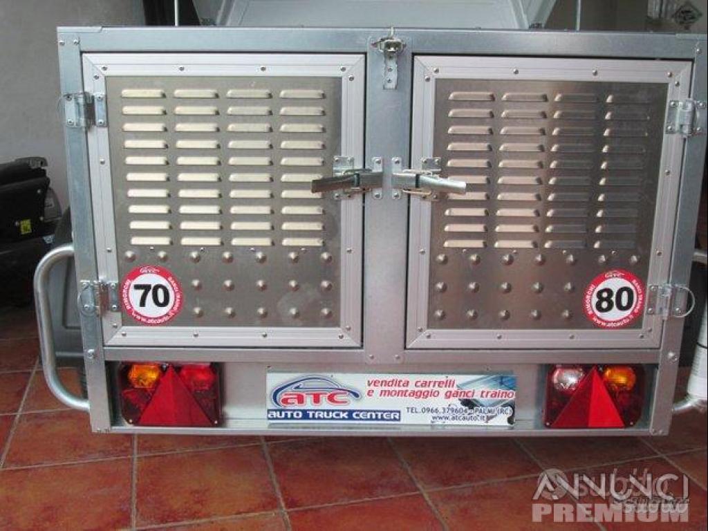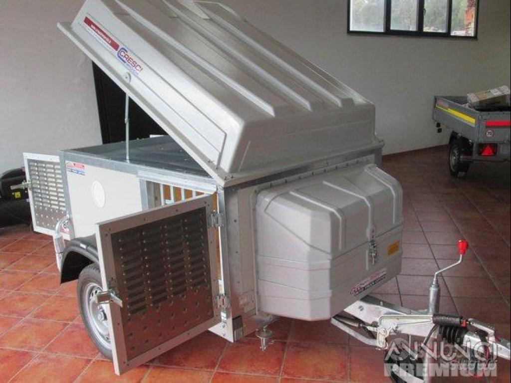 Rimorchio nuovo omologato trasporto cani marca Cresci rimorchi modello TC4 coibentato con freni con peso a pieno carico 450 Kg,portata utile 240Kg.
