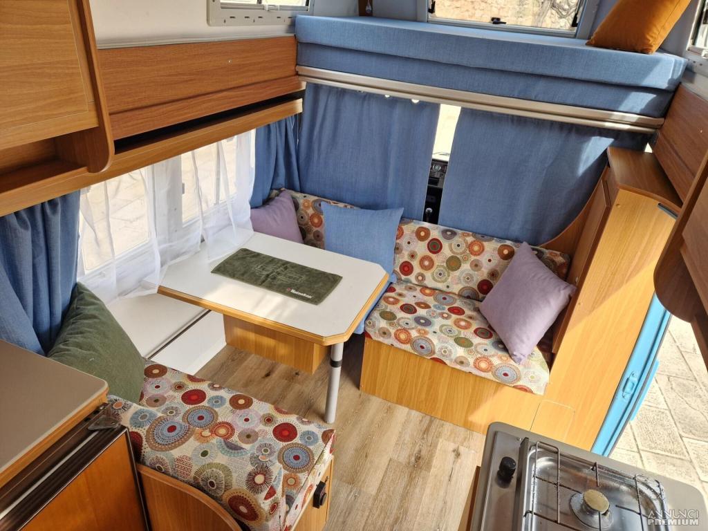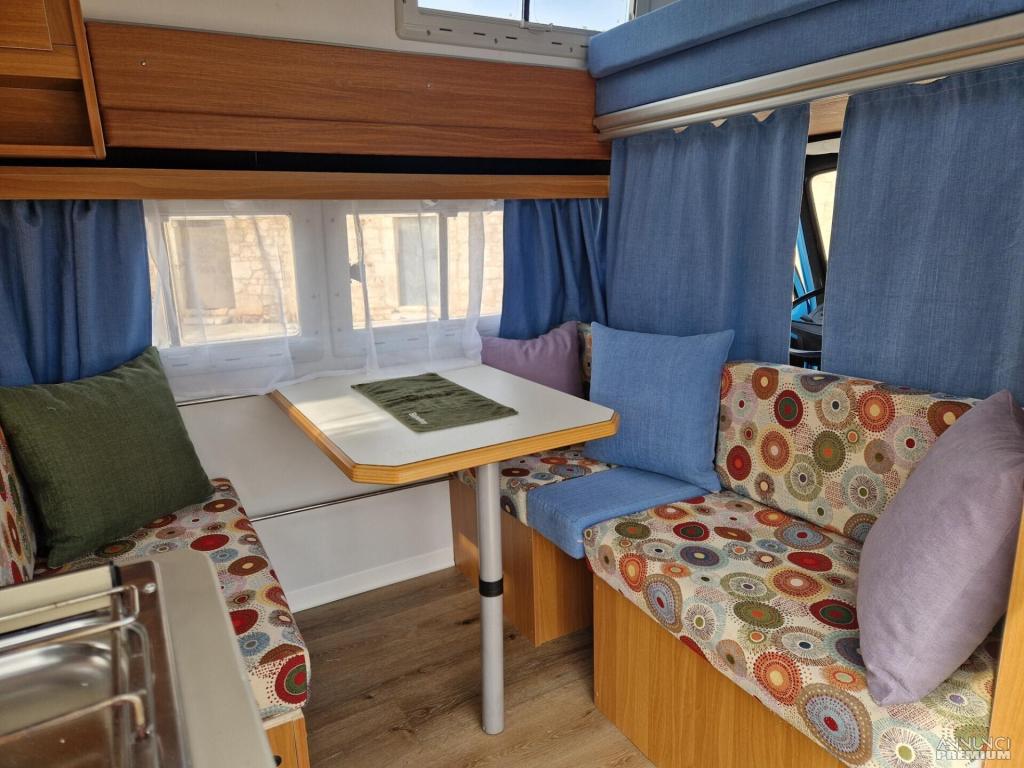 Autocaravan rimesso a nuovo, compatto con 5 posti sul libretto, motore Diesel 2.4, cambio manuale, portapacchi, cucina 2 fuochi, frigorifero, gli interni e la carrozzeria rimessi a nuovo. Lunghezza 5,850 m. Gancio traino omologato (massa rimorchiabile 2000Kg), Portabici omologato a libretto. Disponibile per qualsiasi prova.