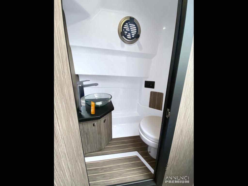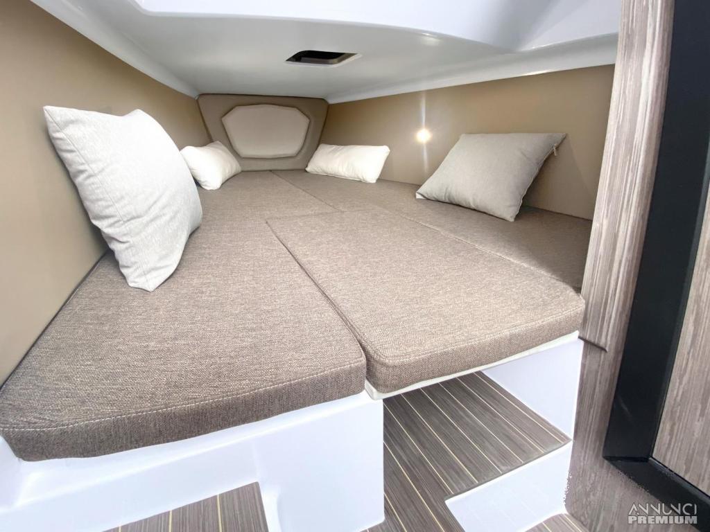 Design: Linee moderne e accattivanti, con un ampio solarium a prua e un pozzetto a "C" con ampi gavoni sottostanti.