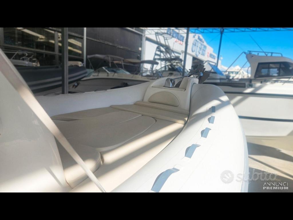 Zodiac Medline 3 è un gommone semirigido che combina eleganza e funzionalità. Con una lunghezza di circa 7,3 metri e una larghezza di 3 metri, offre ampi spazi per il relax e il divertimento in mare.