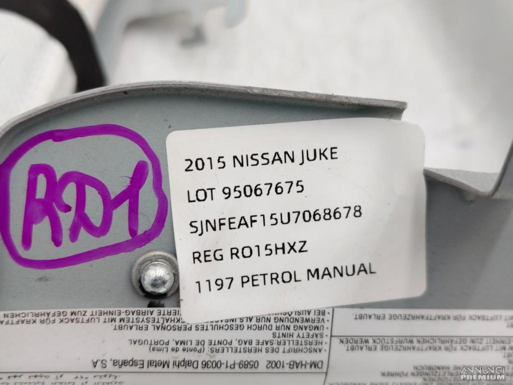 AIRBAG A TENDINA TETTO LATERALE DESTRA DX NISSAN JUKE I F15 2015 985P01KA0D RD1