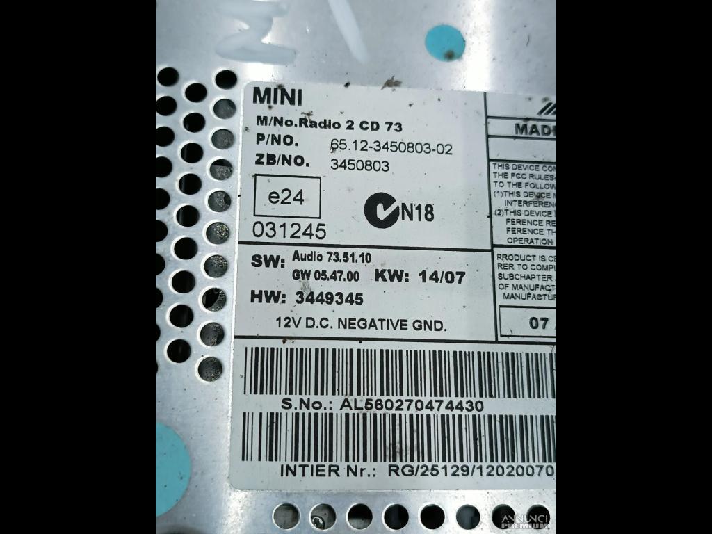 AUTORADIO /BOOST LETTORE CD/ MINI COOPER 2007 65123450803 3450803 F2