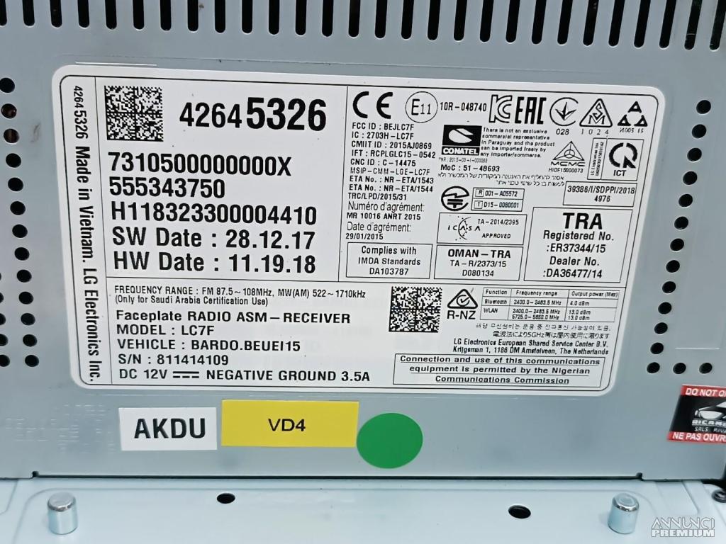 AUTORADIO/ DISPLAY MULTIFUNZIONE/COMPUTER DI BORDO OPEL ADAM 2019 42645326 VD4