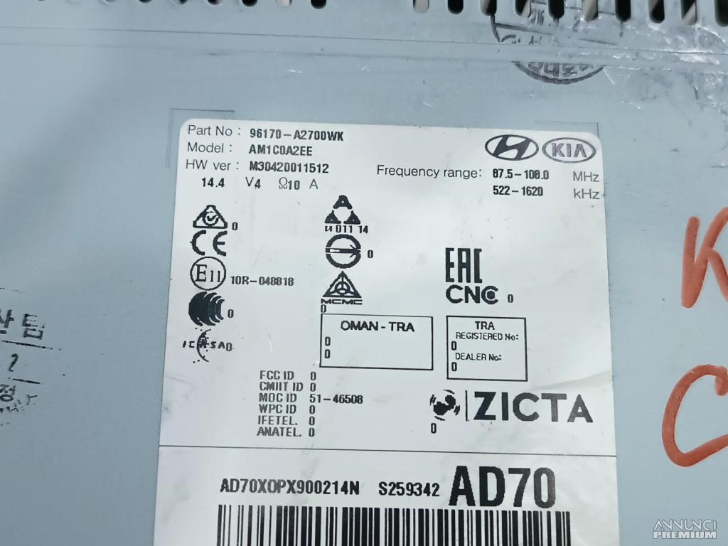 AUTORADIO LETTORE CD BLUETOOTH 2017 KIA CEED 96170A2700WK 10R048818 B2
