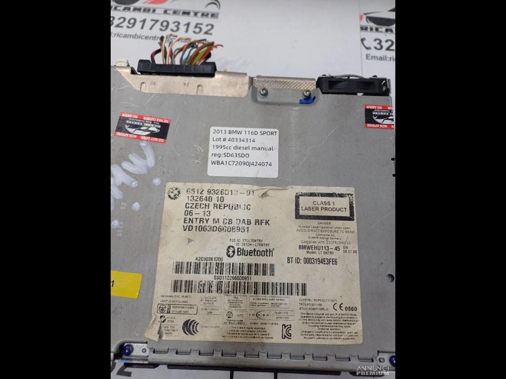 AUTORADIO LETTORE CD BMW SERIE 1 F20 116D 2013 9326013 13264010 9270365 F1