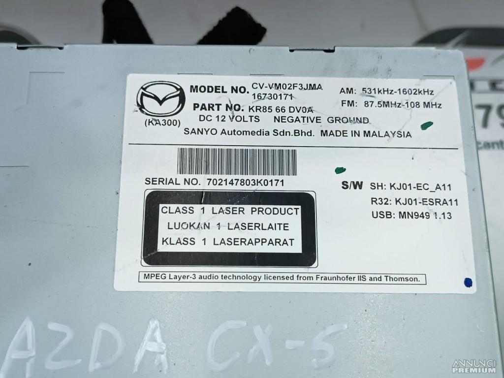 AUTORADIO LETTORE CD GPS SCHERMO NAVIGATORE MAZDA CX-5 2014 KR8566DV0A A2