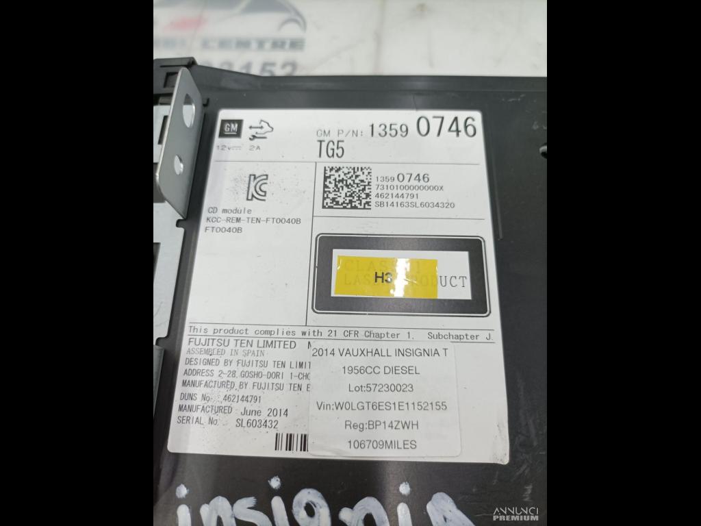 AUTORADIO LETTORE CD OPEL INSIGNIA 2013 13290746 462144791 H3