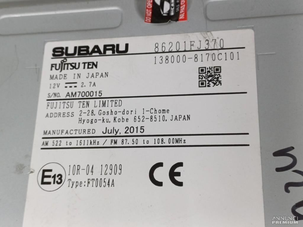 AUTORADIO LETTORE CD SCHERMO MULTIFUNZIONE SUBARU XV 2015 86201FJ370??VE5