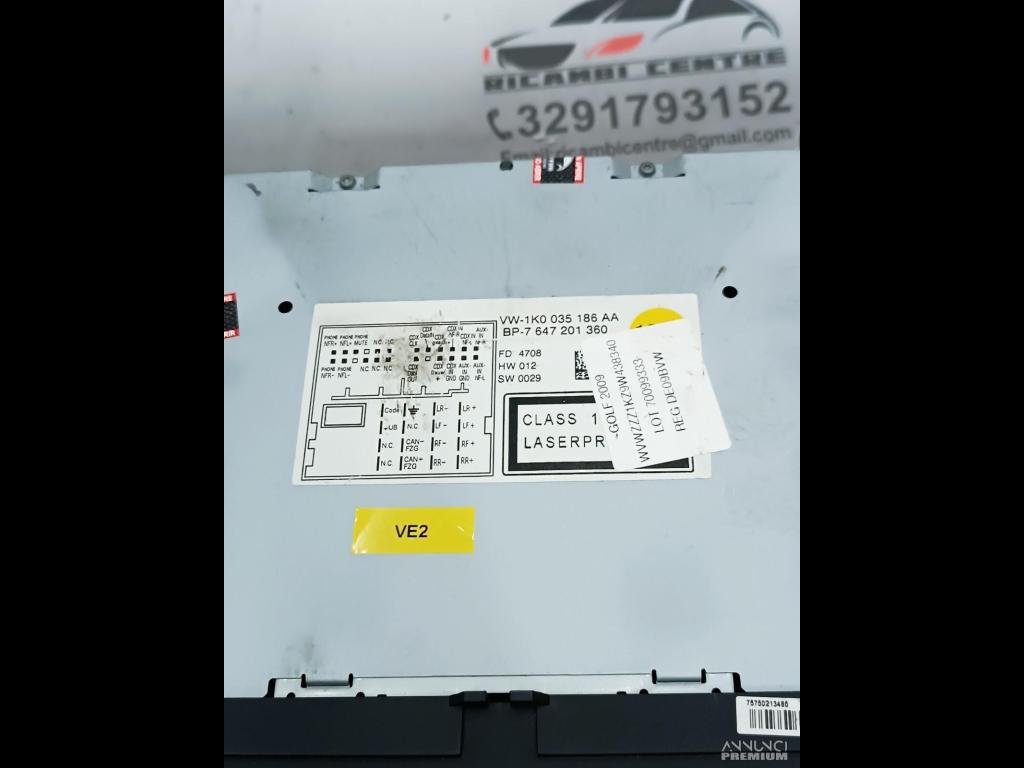AUTORADIO LETTORE CD VW GOLF VI (5K1) /PASSAT B6 (3C2) 1K0035186AA VE2