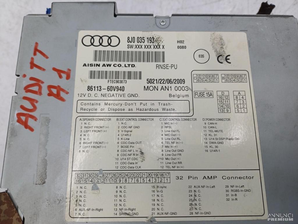 AUTORADIO MULTIMED GPS NAVIGATORE BLUETOOTH AUDI TT QUATTRO 2009 8J0035193 A1?
