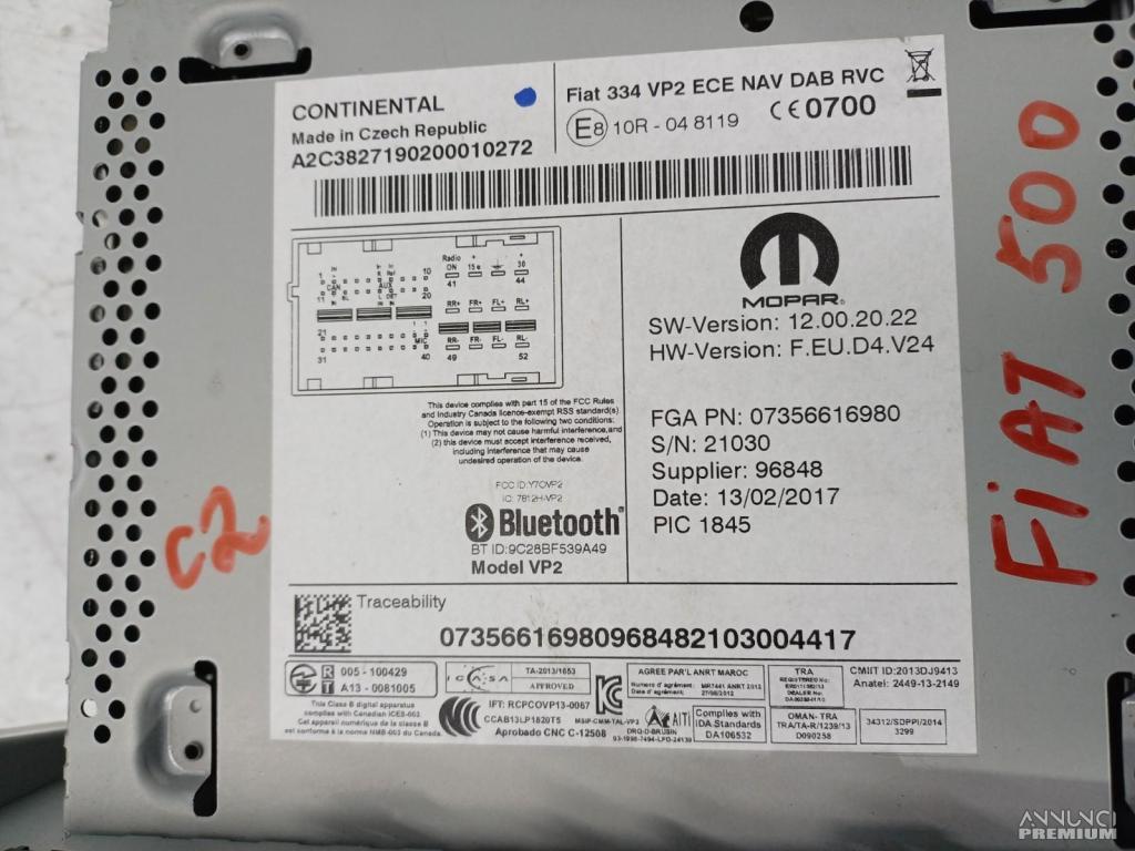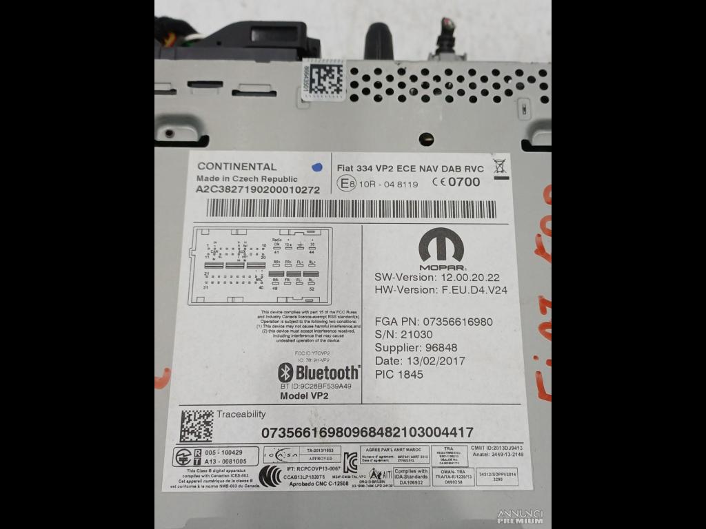 AUTORADIO MULTIMEDIA GPS NAVIGATORE BLUETOOTH FIAT 500X CROSS 2017 C2