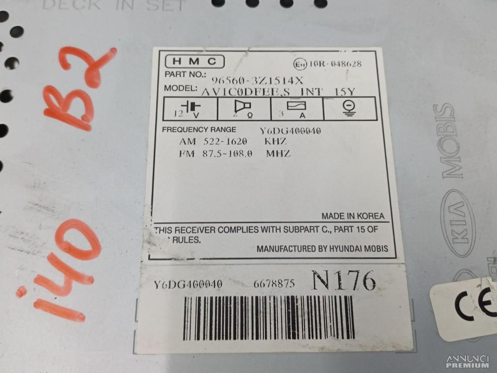 AUTORADIO MULTIMEDIA GPS NAVIGATORE LETTORE CD HYUNDAI I40 15 VF 2016 B2