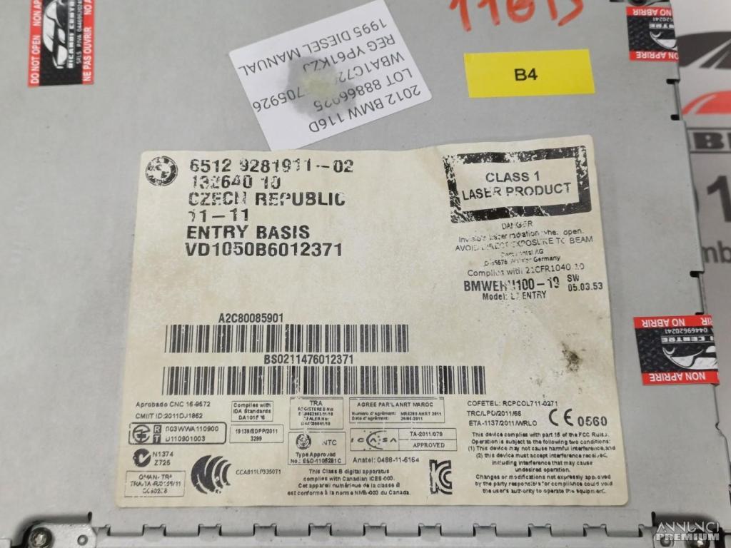 AUTORADIO MULTIMEDIA GPS NAVIGATORE LETTORE CD PTOFESSIONAL BMW F20 2012 B4