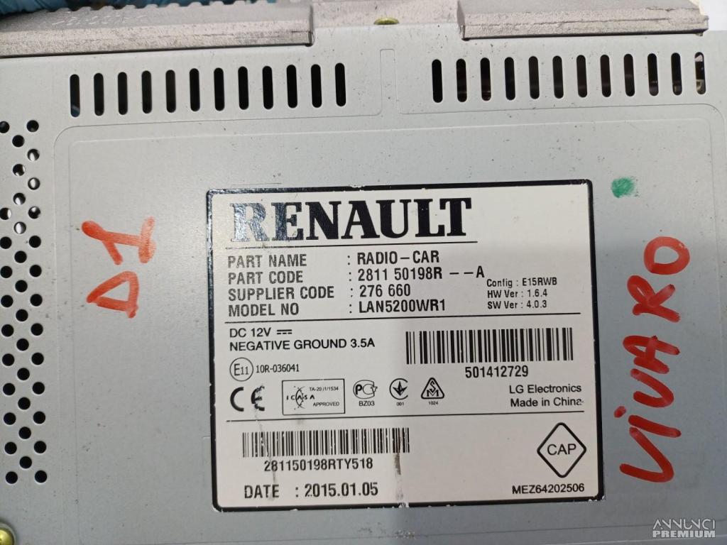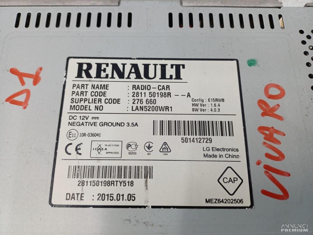 AUTORADIO MULTIMEDIA GPS NAVIGATORE OPEL VIVARO B X82 2015 281150198R D1