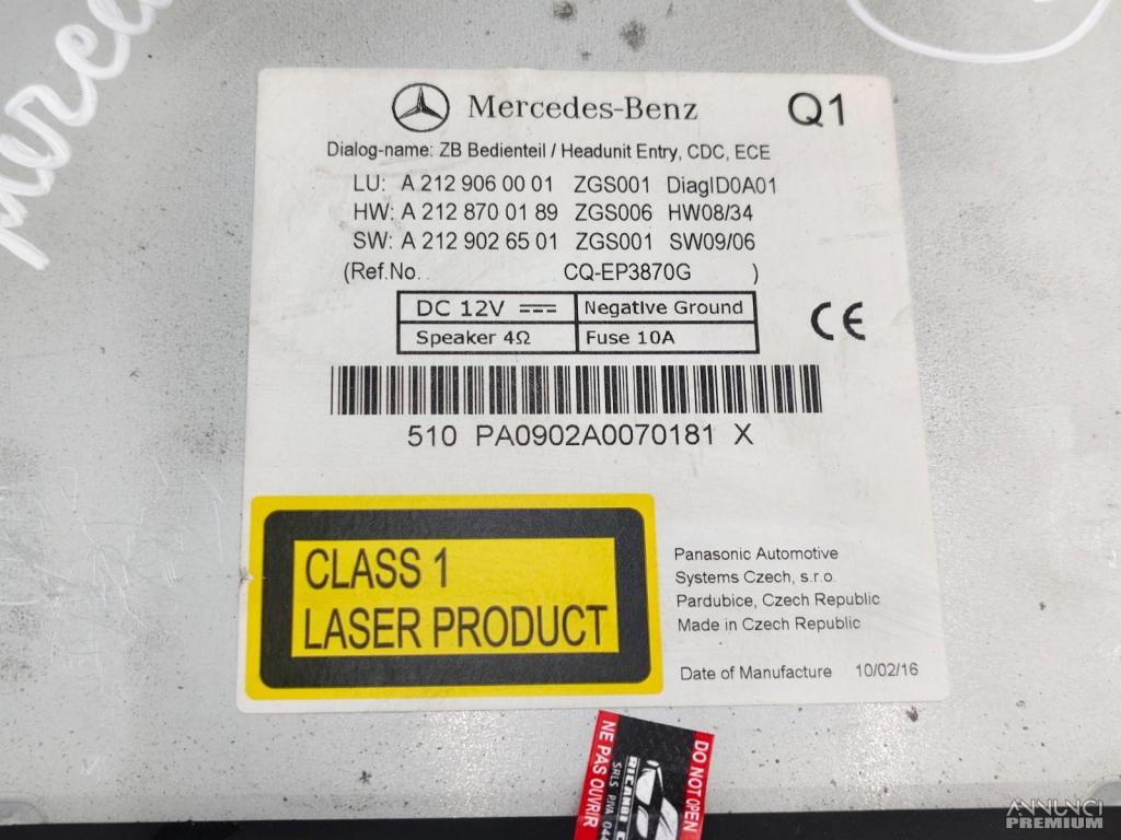 AUTORADIO MULTIMEDIA LETTORE CD MERCEDES E200 W212 2010 A2129060001 VD3