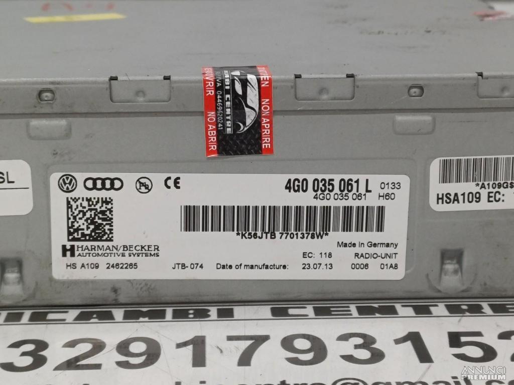 AUTORADIO MULTIMEDIA MMI NAVIGATORE LETTORE CD BLUETOOTH AUDI A4 4G0035061L 2013