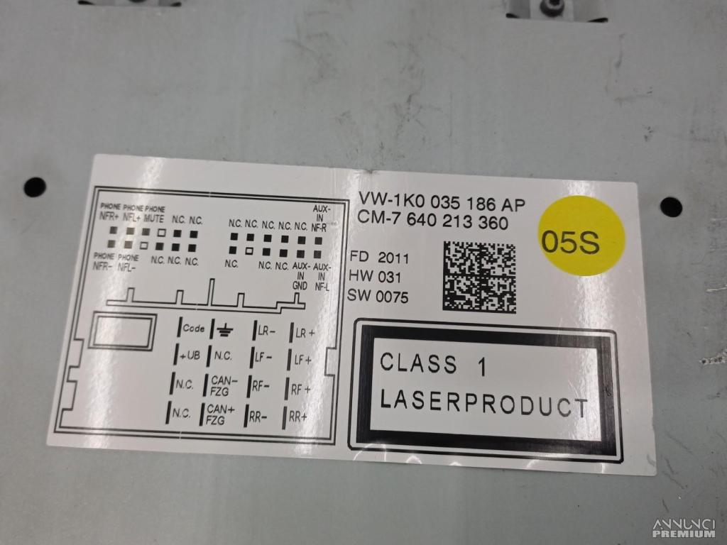 AUTORADIO MULTIMEDIA NAVIGATORE LETTORE CD VW PASSAT B7 2011 1K0035186AP C1