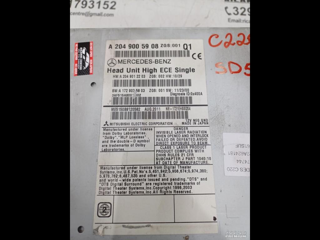 AUTORADIO NAVIGATORE GPS 2011 MERCEDES-BENZ CLASSE E C220 A2049005908 SD5