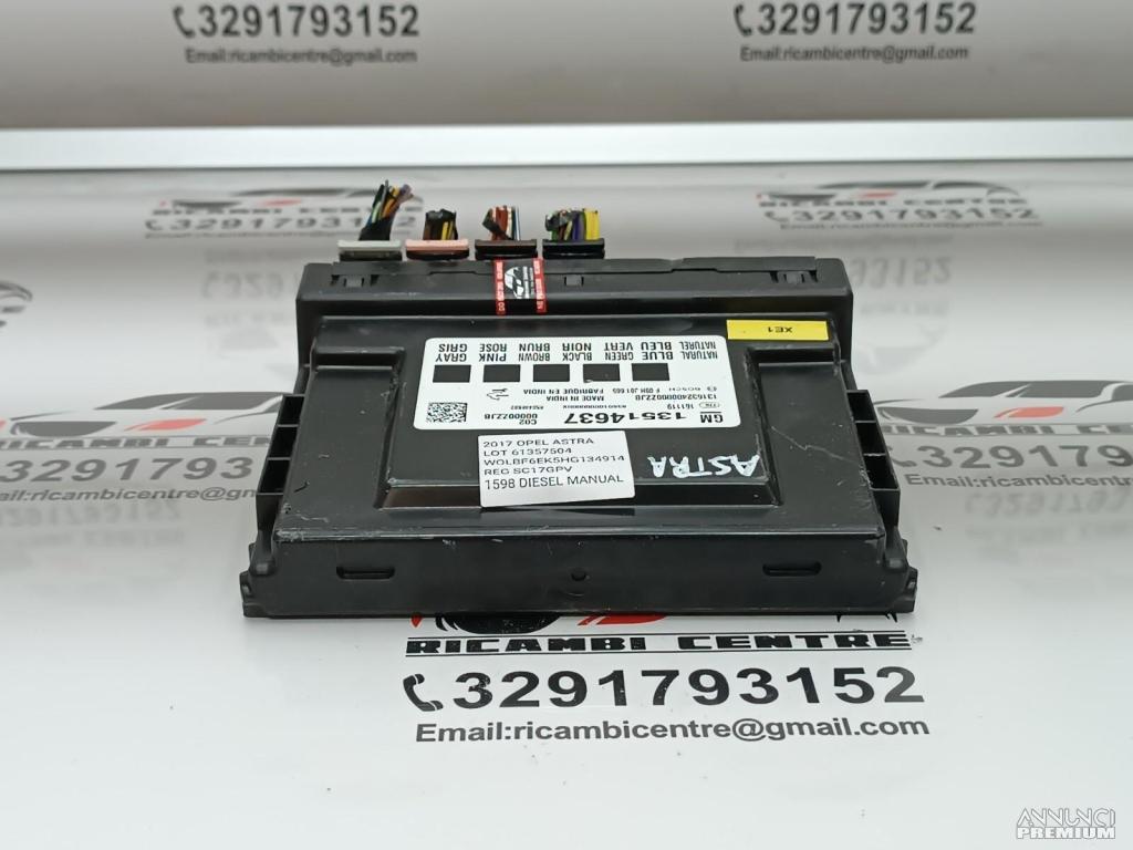 CENTRALINA BCM BODY COMPUTER OPEL ASTRA 2017 13594614 13514637 XE1