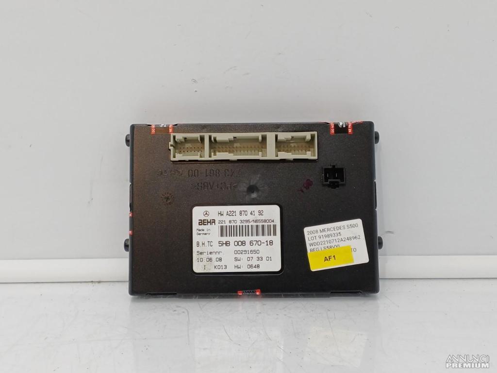 CENTRALINA COMANDO ARIA CLIMA MODULO A/? MERCEDES S500 W221 2008 AF1