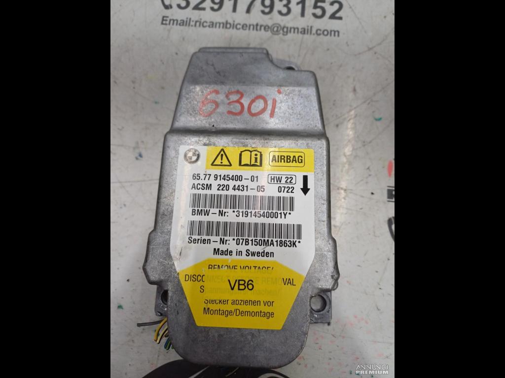 CENTRALINA CONTROLLO AIRBAG 2007 BMW 6 E63 630i 65779145400 9145400-01 VB6