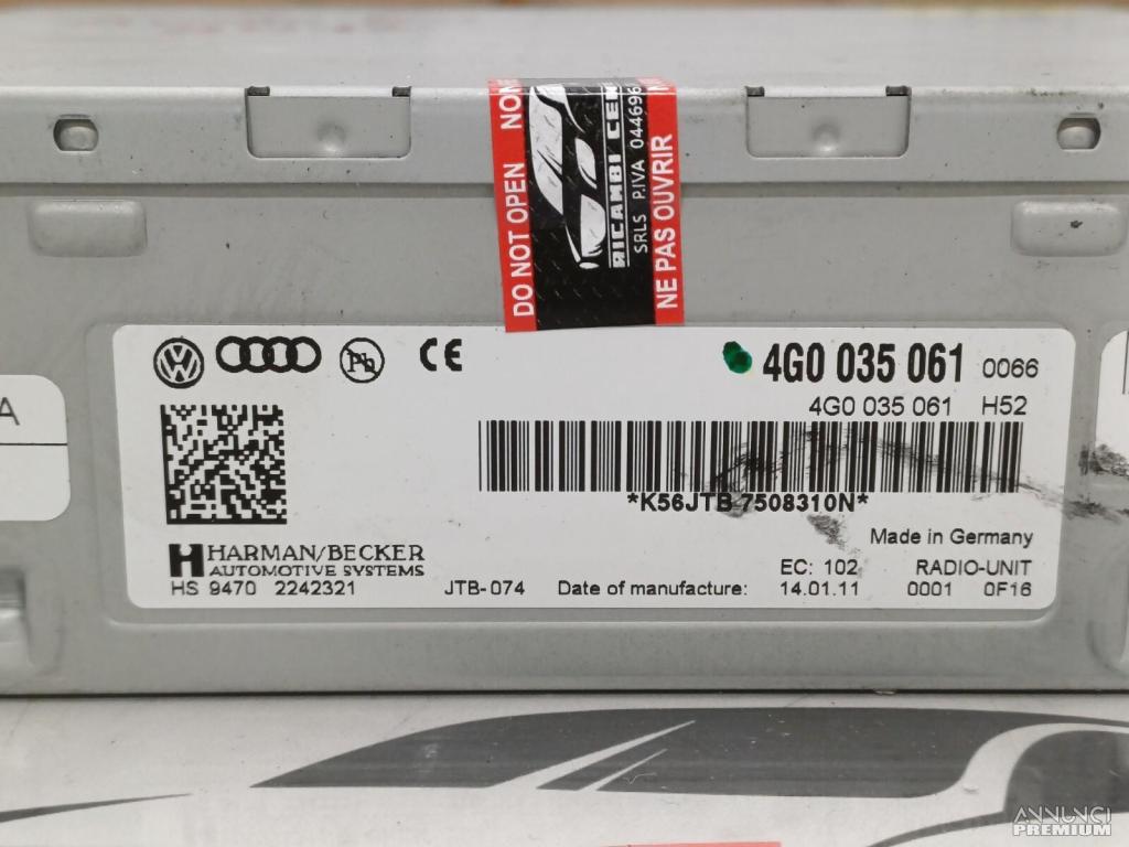 Codice ricambio originale OE/OEM : 4G0035061, HARMAN/BECKER, JTB-074, 4G0035061F, 4G0035061FX