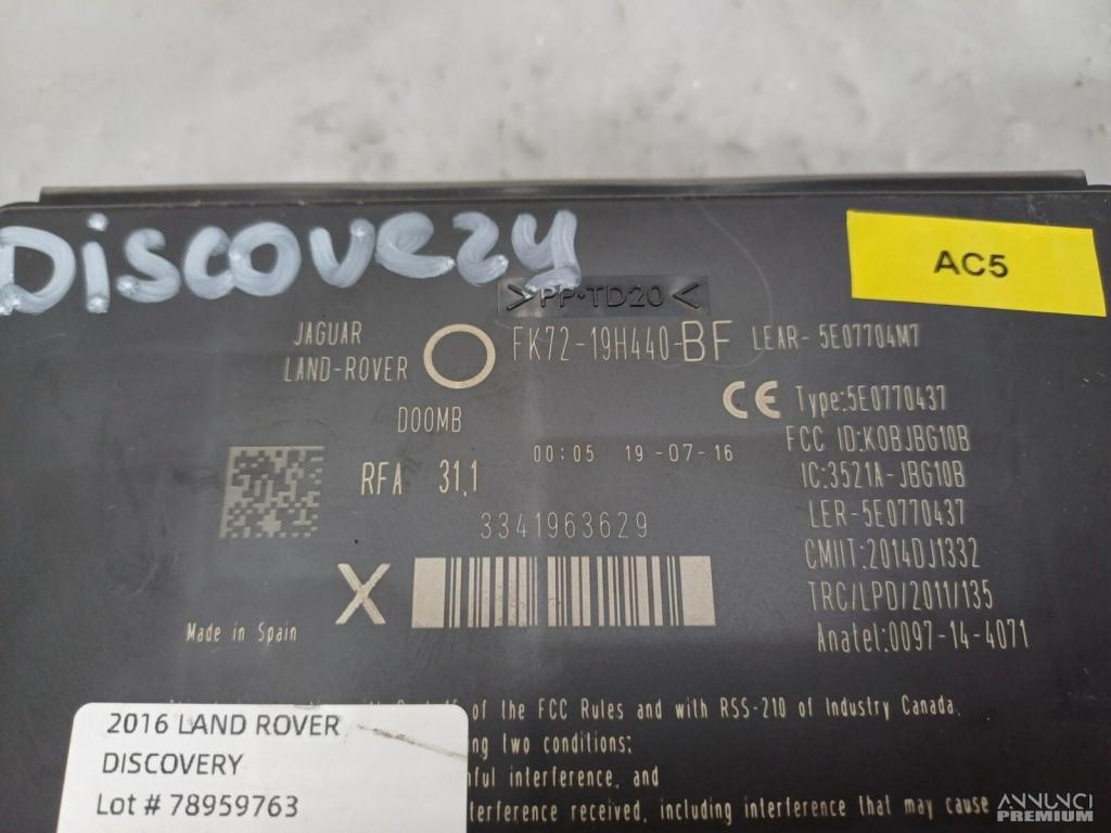 CENTRALINA KEYLESS LAND ROVER DISCOVERY SPORT 2016 204DTD FK7219H440BF AC5