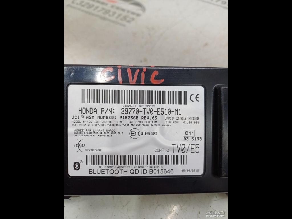 CENTRALINA MODULO BLUETOOTH 2012 HONDA CIVIC IX (FK) 39770TV0E510M1 XD6