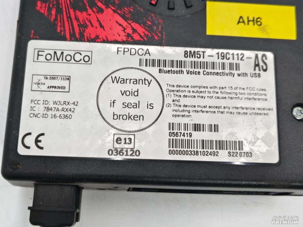 CENTRALINA MODULO BLUETOOTH TELEFONO FORD FOCUS 8M5T19C112AS 1806653 AH6
