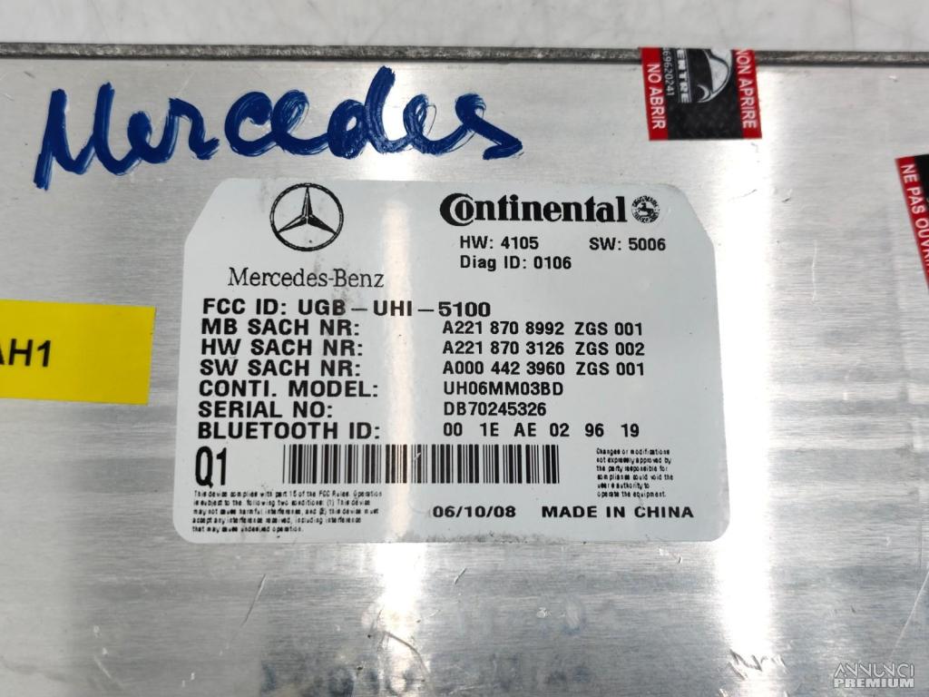 CENTRALINA MODULO BLUETOOTH TELEFONO MERCEDES S500 W221 2008 A2218708992 AH1
