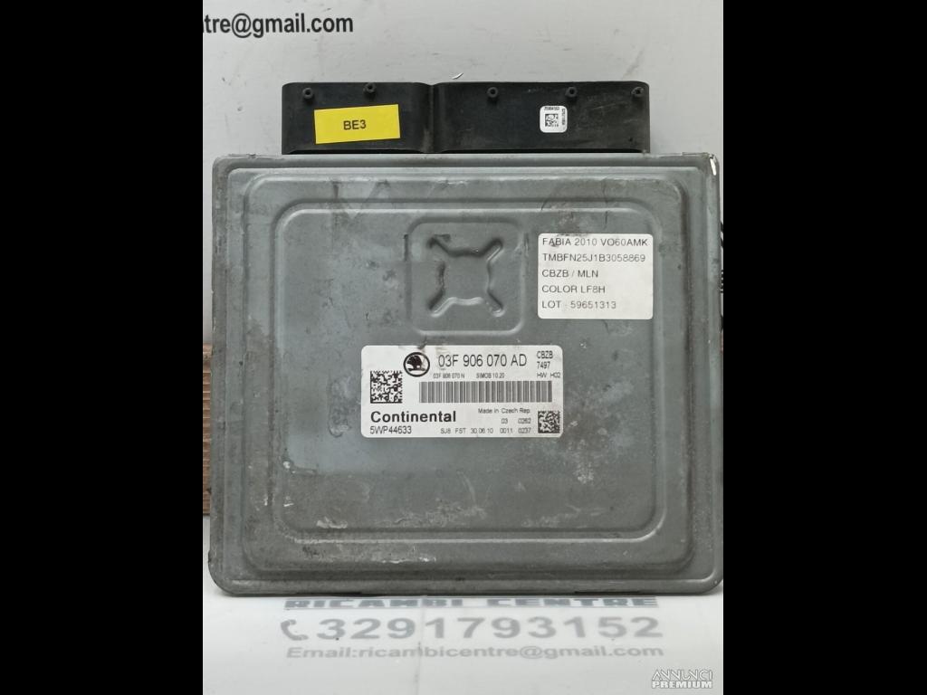 CENTRALINA MOTORE ECU SKODA FABIA 2010 03F906070AD 03F906070N 5WP44633 BE3