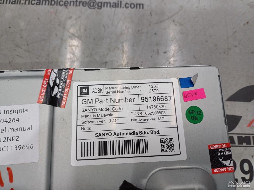 DISPLAY MULTIFUNZIONE 7 PER OPEL INSIGNIA 2012 95196687 42507400 42452241 SD4