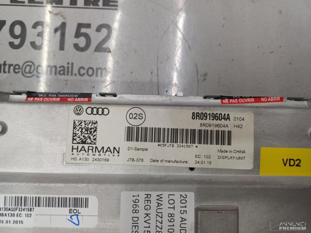 DISPLAY SCHERMO MULTIFUNZIONE GPS NAVIGATORE AUDI Q5 S LINE 2015 8R0919604A VD2