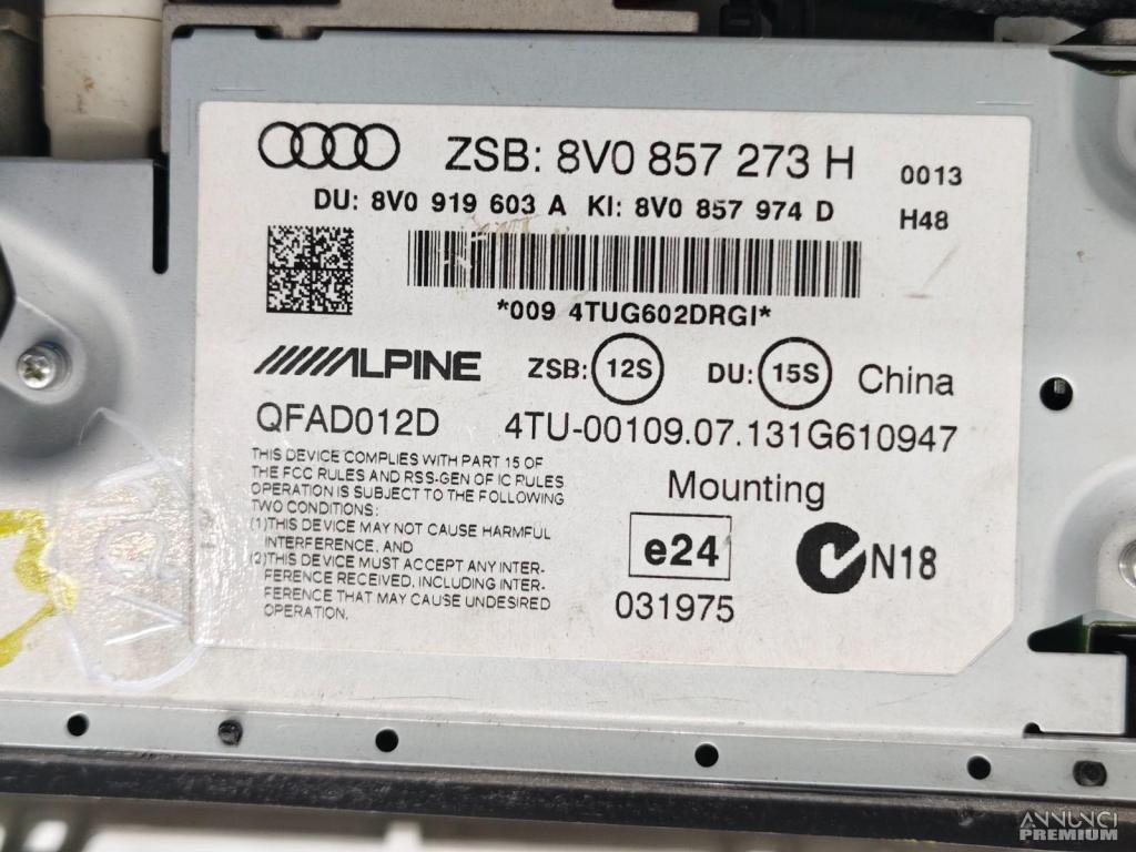 DISPLAY SCHERMO MULTIFUNZIONE GPS NAVIGATORE AUDI A3 2013 8V0857273H VD4