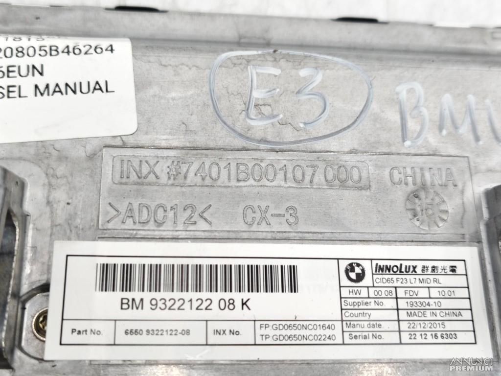 DISPLAY SCHERMO MULTIFUNZIONE GPS NAVIGATORE BMW F20 F21 F22 F23 65509322122 E3